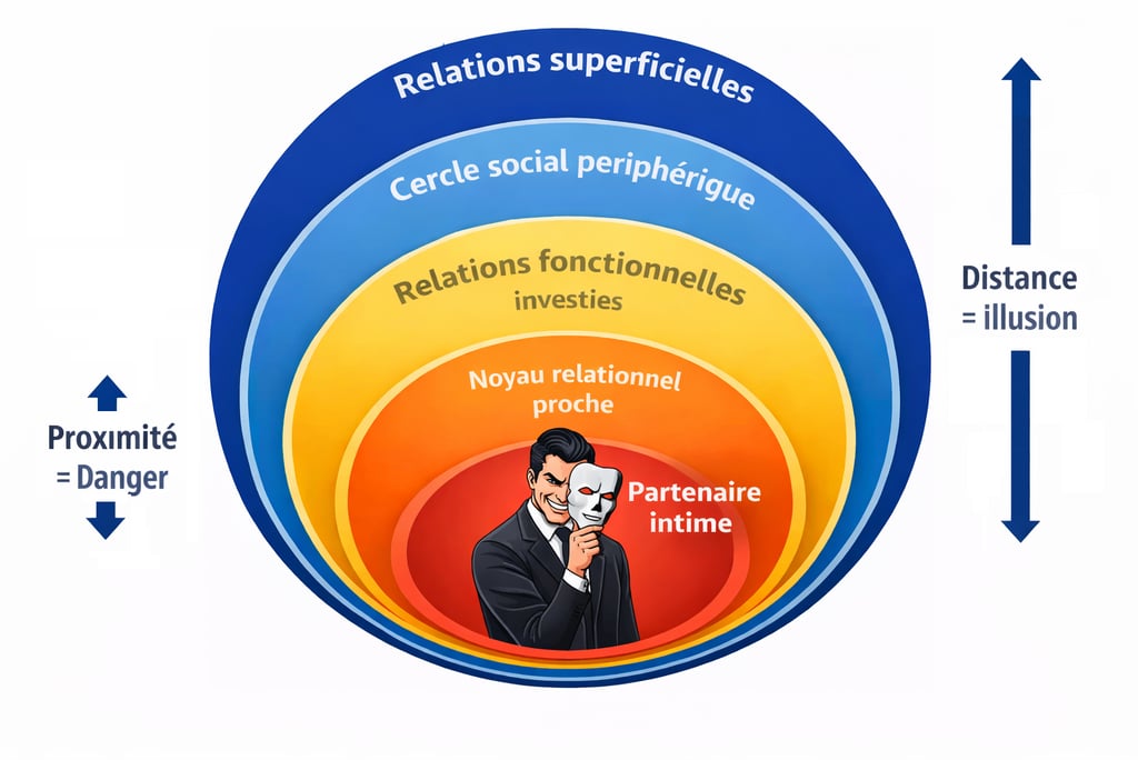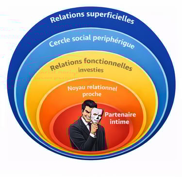 Les relations humaines s’organisent naturellement selon des cercles de proximité. Plus une relation est proche, plus elle implique de confiance, d’engagement émotionnel et de vulnérabilité. À l’inverse, les relations éloignées sont plus superficielles, socialement utiles, mais peu exposantes sur le plan affectif.