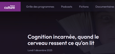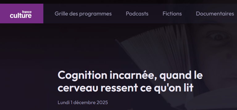 L’émission Avec Science de France Culture a récemment mis en lumière une étude publiée dans iScience, réalisée au CHU de Grenoble, qui montre que la simple lecture de mots évoquant une sensation active l’insula postérieure, région impliquée dans la perception réelle de cette sensation. Les participants implantés d’électrodes intracrâniennes présentaient une activation spécifique et corrélée à l’intensité subjective associée à ces mots. Ce résultat confirme un mécanisme : la cognition mobilise des réseaux corporels, même en l’absence d’action ou de stimulation physique. Cette observation ne suffit pas à valider un cadre théorique global, mais elle illustre clairement l’articulation entre langage, sensation et simulation interne.