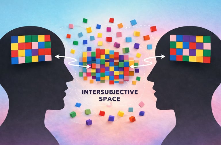 L’espace intersubjectif, c’est l’espace partagé entre deux personnes dans lequel se construit leur représentation commune d’une situation, d’un problème ou d’un projet. Chacun arrive avec sa vision, ses mots, ses images mentales. À travers le dialogue, les échanges, parfois des documents ou des supports écrits, les deux partenaires vont peu à peu ajuster leurs points de vue pour se rapprocher d’une base commune de compréhension.