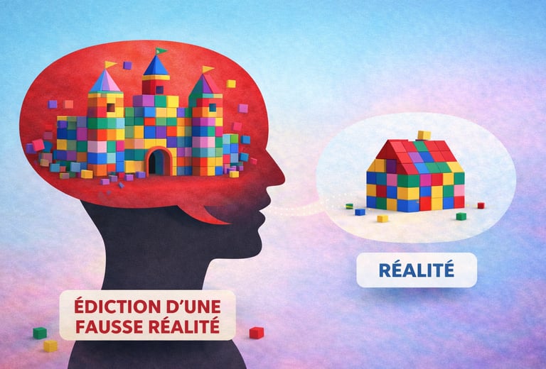 Ainsi, en modifiant la perception des faits dans l’esprit de ses interlocuteurs et dans l’espace intersubjectif, il induit une fausse réalité destinée à masquer ou nier ses propres failles. Ce détournement du langage répond à une nécessité psychique profonde : échapper à la réalité qui menace de dévoiler ses comportements et ses défaillances.